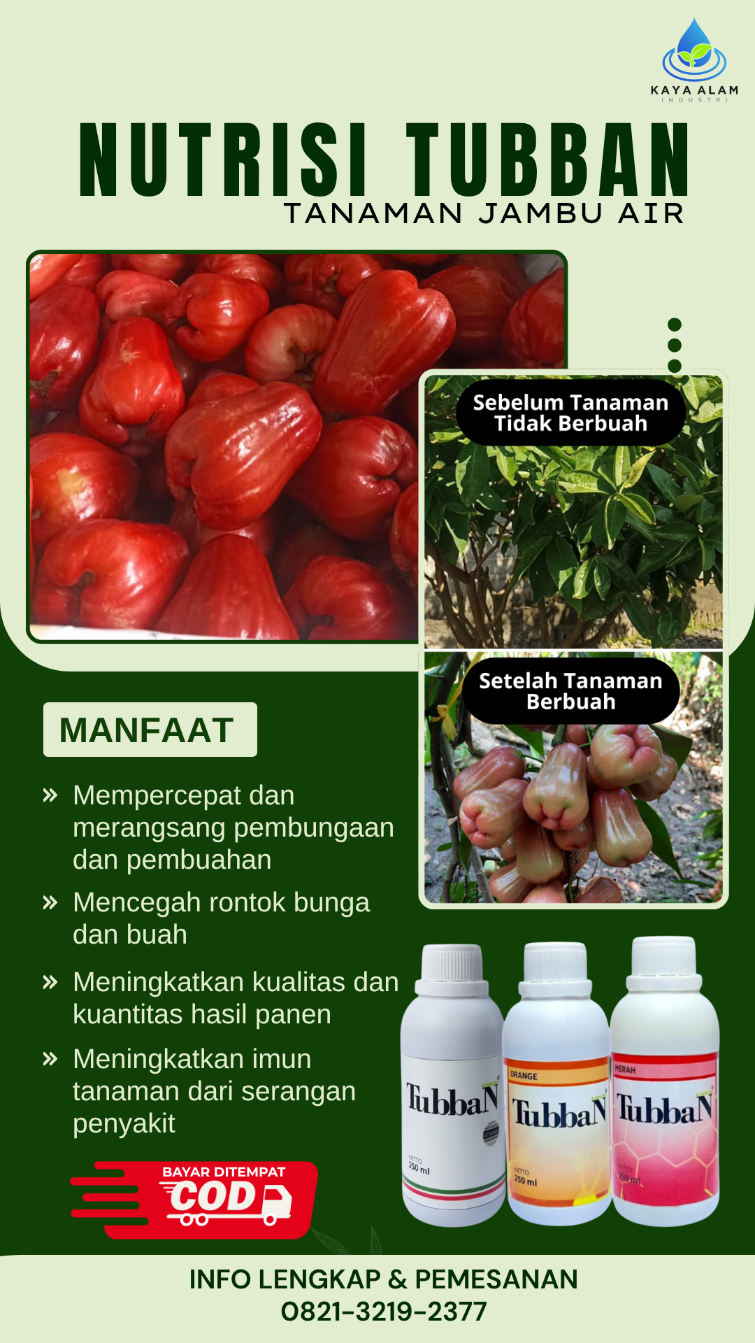 Tanaman jambu air sering kali menghadapi kendala seperti sulit berbunga, bunga dan buah yang rontok, hingga kualitas panen yang kurang maksimal. Untuk mengatasi tantangan tersebut, Nutrisi TubbaN hadir sebagai solusi tepat bagi para petani maupun penghobi tanaman jambu air. Dengan formulasi khusus berbahan organik, TubbaN mampu merangsang pembungaan serta mempercepat pembuahan pada tanaman jambu air.… Continue reading Nutrisi TubbaN untuk Tanaman Jambu Air: Rahasia Buah Lebat dan Berkualitas